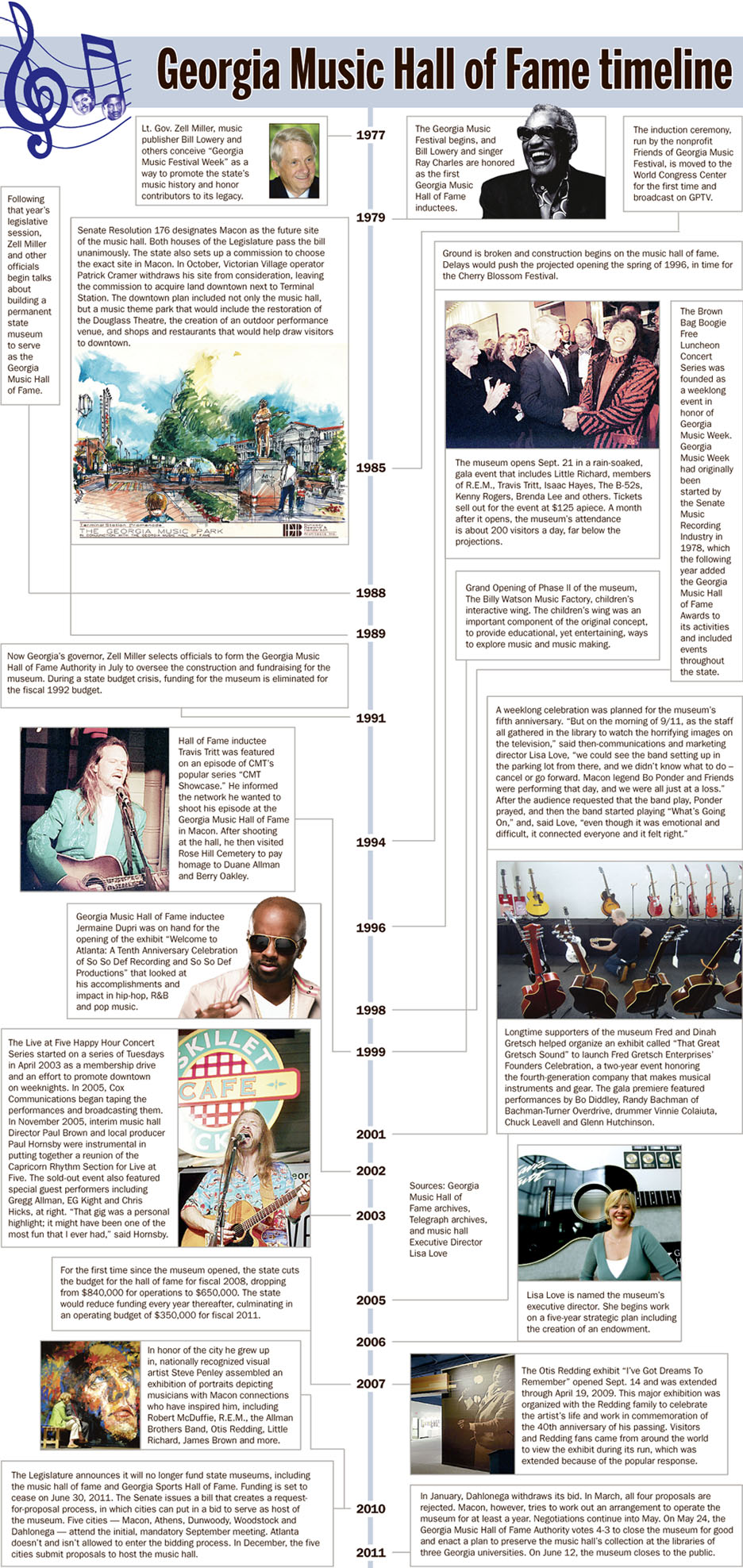 “The biggest disconnect is that the Friends of Georgia Music have never talked nice about the Georgia Music Hall of Fame being in Macon,” he said. “The two should be coordinating (their efforts) if not being one and the same. ... It really does show that people weren’t working to a common end.”