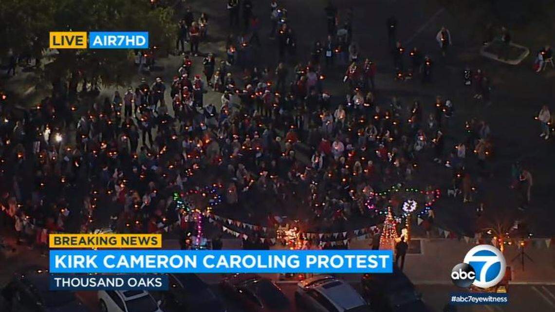 A second Christmas singalong protest hosted Tuesday night by actor Kirk Cameron drew dozens to a Southern California shopping mall parking lot.