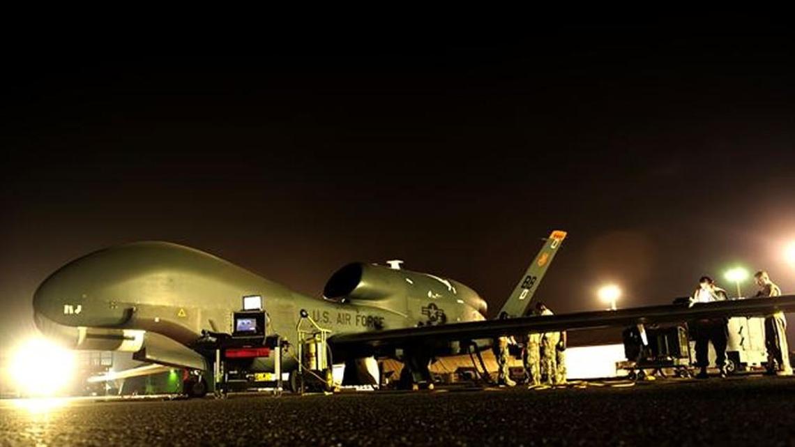 The Global Hawk is a spy plane with a 131-foot wingspan, which is nearly that of a C-130. It can fly at high altitudes for more than 30 hours, gathering high-resolution imagery.