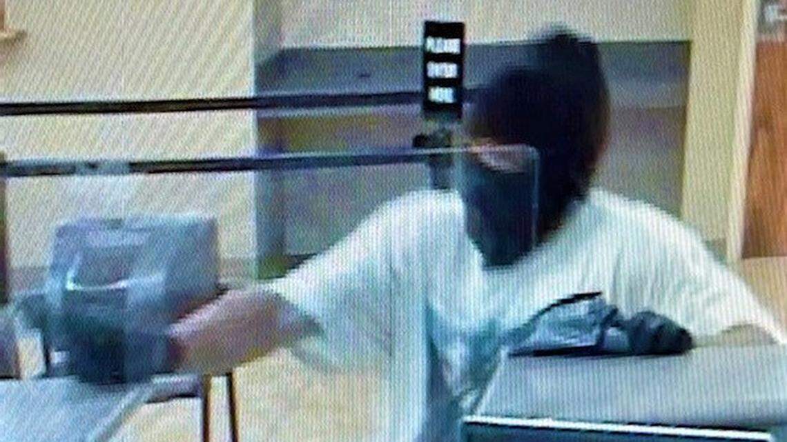 The statement said the gunman, described as a light-skinned Black man wearing a ski mask and a white T-shirt and khaki pants, went to the bank and demanded money and “fired his weapon,” wounding a person there.